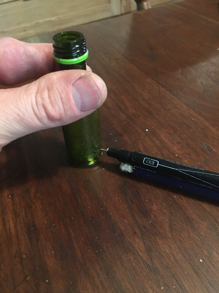 using shims scribe with marker while spinning cylinder