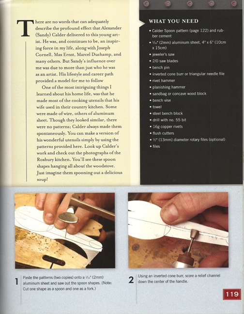 Begin by reading the Calder Spoons tutorial by Thomas Mann from his book, “Metal Artists’s Workbench; Demystifying the Jeweler’s Saw.”